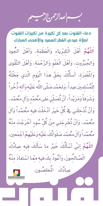 دعاء القنوت لعيدي الفطر والأضحى المبارك